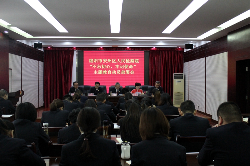 为深入学习贯彻习近平总书记在中央“不忘初心、牢记使命”主题教育工作会议上的重要讲话精神,全面落实中央、省委、市委、区委和市检察院关于“不忘初心、牢记使命”主题教育的决策部署,9月20日上午,绵阳市安州区中信精彩365_365彩票app下载苹果版_英国beat365官方登录召开“不忘初心、牢记使命”主题教育动员部署会。院党组副书记、副检察长张绍平主持会议,院党组书记、检察长景中强作动员讲话,区委“不忘初心、牢记使命”主题教育第二巡回指导组组长杨旭到会指导并讲话。