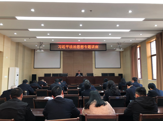 为深入贯彻落实习近平法治思想,推动政法队伍教育整顿学习教育成果转化为思想成果和工作成果,近日,北川县检察院举办习近平法治思想专题讲座。党组书记、副检察长王良平以中国社会科学院学部委员、法学研究所研究员李林所写的《习近平法治思想的核心要义》文章为主要内容与大家做了沟通交流,对干警进一步学习领会习近平法治思想的深刻内涵和核心,运用其指导司法实践有很强的启发性。随后,组织全院干警一起观看了张震教授以“深学笃用习近平法治思想,全面推进依法治国”为题的专题讲座,张震教授从习近平法治思想的重大战略定位、对习近平法治思想“十一个坚持”的践行等几方面进行了深刻阐述,激励每一位党员干部有信心和力量迈进新时代踏上新征程。