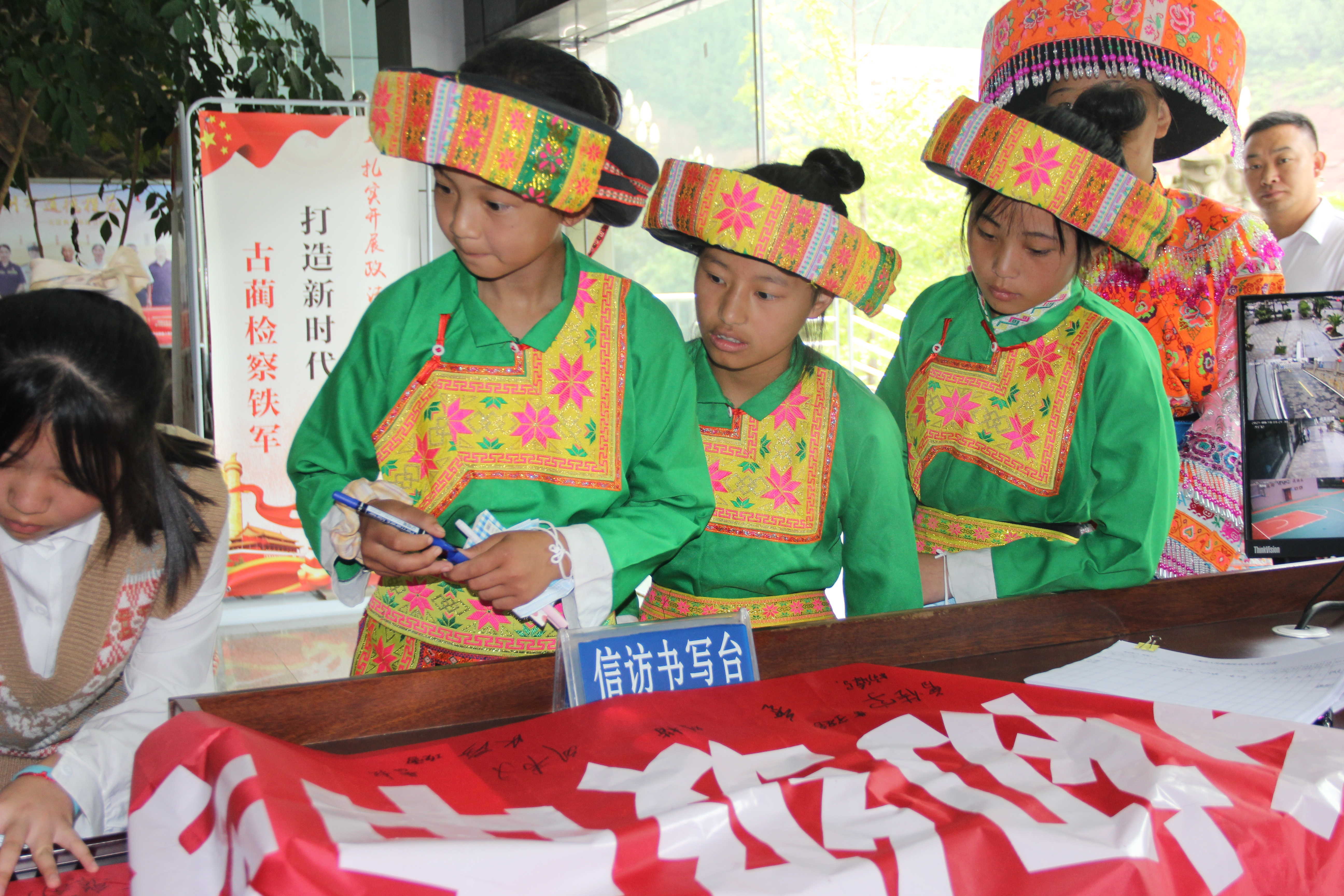 点餐式定制民族团结、苗语音乐、树婚嫁新风等课程,走进大寨、马嘶、石屏等乡镇学校,让民族学生均衡享受法治教育。