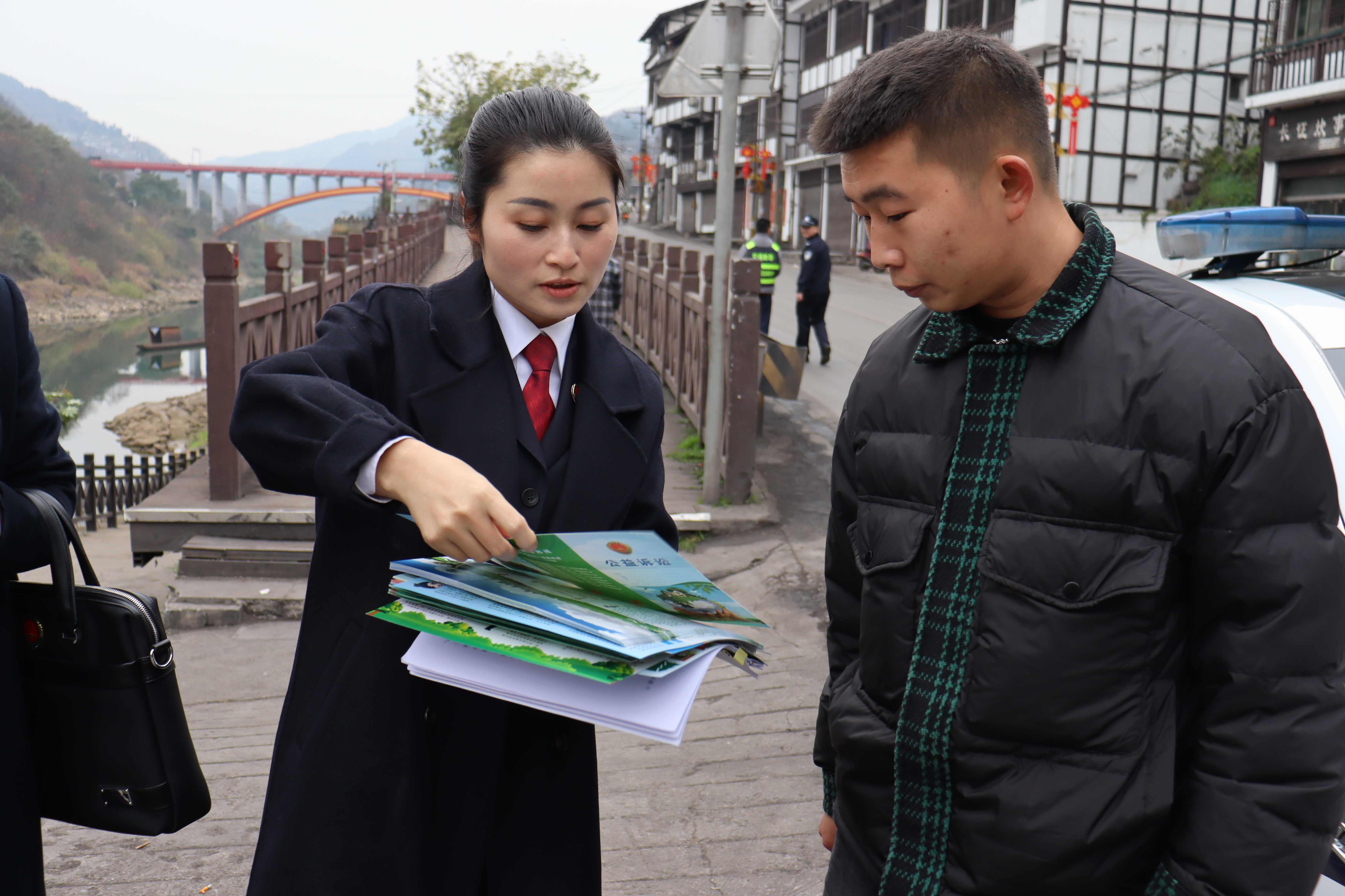 向群众发放宣传手册