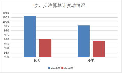 2019年度收入总计980.68万元,支出总计978.22万元。与2018年相比,2018年度收入总计1006.66万元,减少25.98万元,下降2.58%。2018年度支出总计995.84万元,减少17.62万元,下降1.77%。主要变动原因是保险缴纳比例减少,人员成本降低。