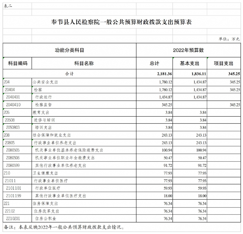 (二)支出预算:2022年年初预算数2181.36万元,其中:公共安全支出1780.12万元,教育支出3.84万元,社会保障和就业支出243.13万元,卫生健康支出77.93万元,住房保障支出76.34万元;支出较去年减少775.77万元,主要是基本支出增加72.98万元,项目支出减少848.75万元。
