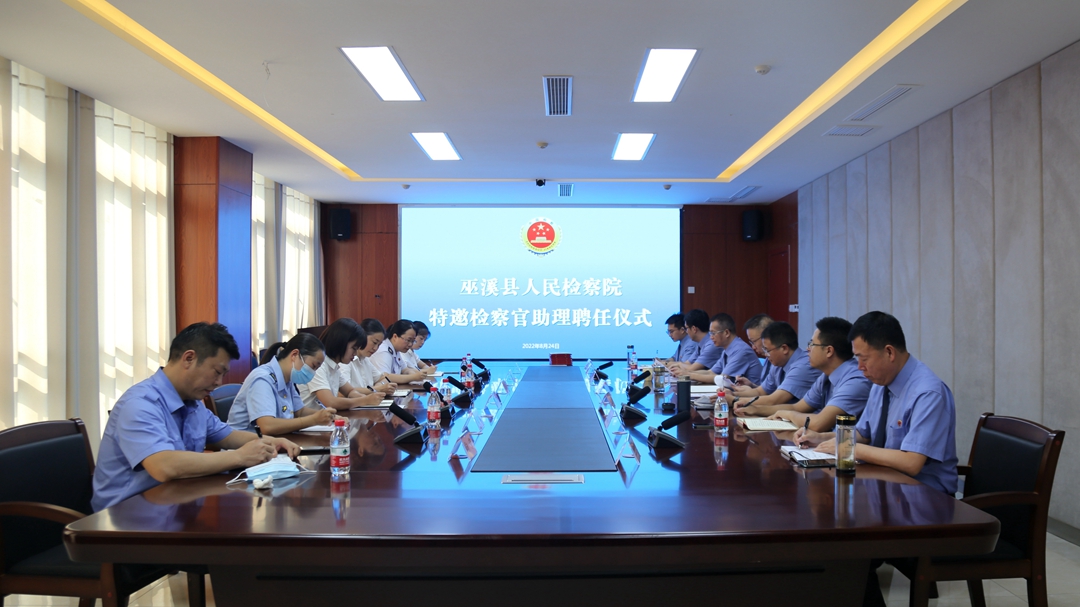 为全面贯彻习近平法治思想,落实《中共中央关于加强新时代检察机关法律监督工作的意见》和中央全面深化司法体制改革部署,进一步贯彻落实最高检关于行政机关专业人员兼任检察官助理的工作要求,以专业“辅助”、最强“外脑”提升办案专业化水平,推动检察工作高质量发展。8月24日上午,巫溪县检察院举行首批特邀检察官助理聘任仪式,来自县规划和自然资源局、水利局、市场监督管理局、生态环境局、税务局、农业农村委等6家行政机关的7名业务骨干被聘任为首批特邀检察官助理。