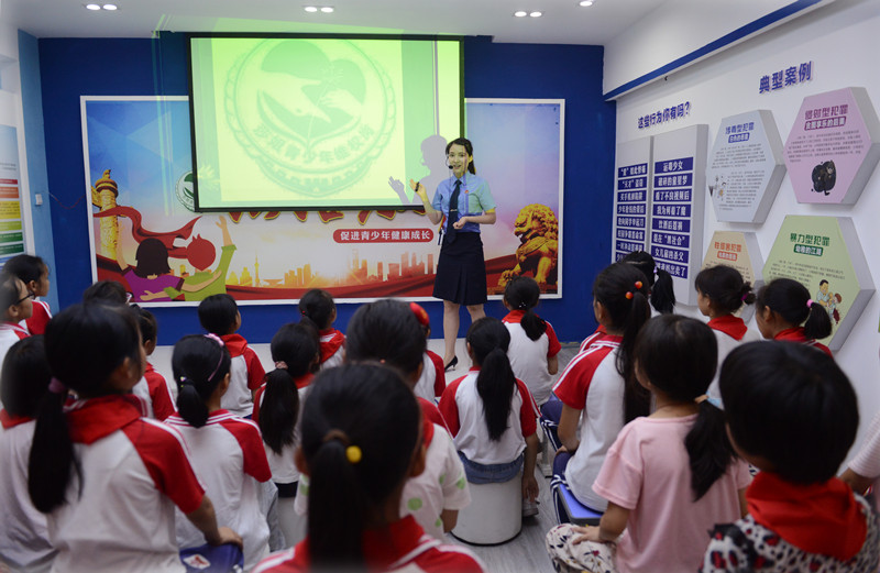 活动中,我院“莎姐”检察官带领学生参观了“莎姐”法治教育基地,通过情景互动的方式让同学们认识了“莎姐”、认识了检察院,随后“莎姐”检察官在法治教育基地用讲故事的方式为同学们讲解了一堂生动的普法安全教育课程,教会同学们认识了什么是性侵害,如何防范性侵害,以及如何防范假期溺水、拐骗等安全事故的发生。