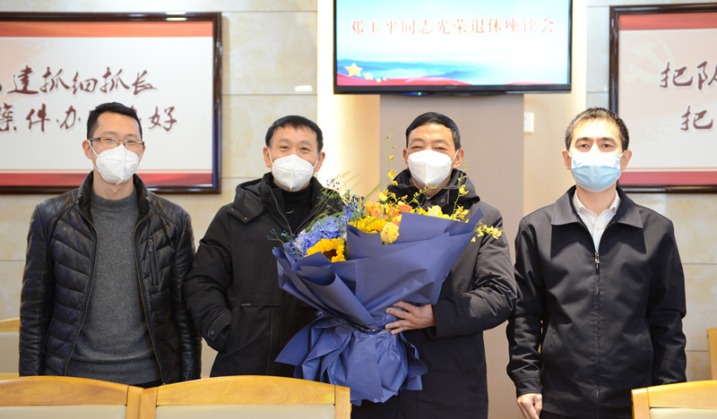 院党组书记、检察长陈璋剑代表党组和全院干警向邓玉平同志送上最忠心的感谢和诚挚的祝福,希望老同志一如既往的支持检察工作,为我院各项工作高质量发展积极建言献策。随后,还为其颁发了退休证、退休纪念册,干警代表献上了鲜花。