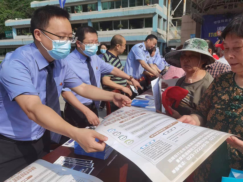 6月15日,我院联合涪陵区检察院参加涪陵区打击非法集资宣传月活动,深入开展防范非法集资宣传教育,普及相关政策法规和风险案例,引导市民群众树立正确理财观念,自觉远离和抵制非法集资。