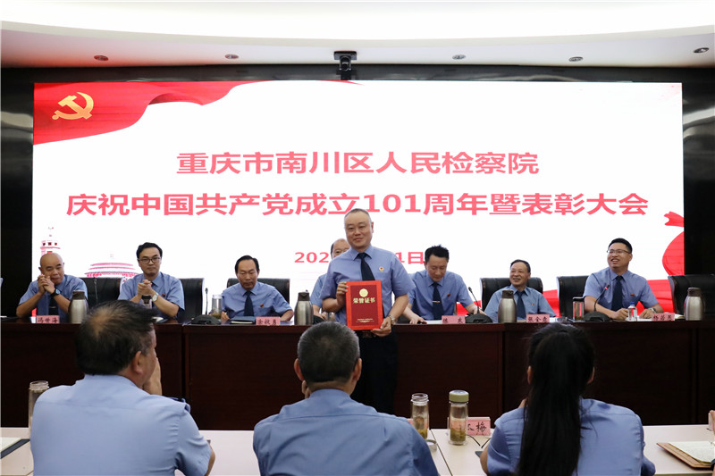 为深入贯彻习近平新时代中国特色社会主义思想,扎实推进党史学习教育,庆祝建党101周年,7月1日,我院召开庆祝中国共产党成立101周年暨表彰大会。会议由院党组成员、副检察长陈东主持,在家院领导及全体干部职工参加。