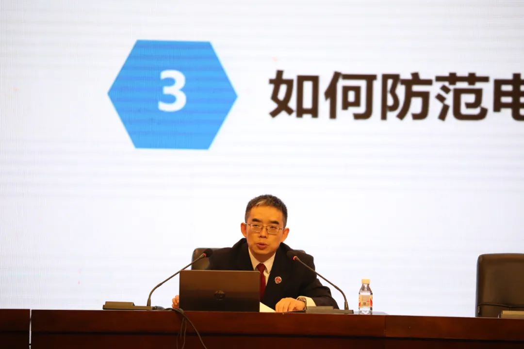 课上,石磊检察长深入浅出讲解了什么是电信网络诈骗、常见的电信网络诈骗类型、如何防范电信网络诈骗,给学生送上一堂“干货满满”的法治课。将近一小时的课堂中,石磊检察长用生动的案例、幽默的语言,就常见的刷单诈骗、“杀猪盘”诈骗、虚假买卖游戏装备诈骗、贷款诈骗、冒充电商客服诈骗、招生诈骗进行逐一讲解,用“三不一多”和“十个凡是”原则,教会同学们识别和防范电信网络诈骗。整堂课既富含法律知识,又贴近生活实际,让学生入脑入心。