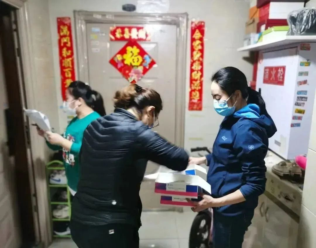在南岸区上门为居民分发核酸自测试剂。