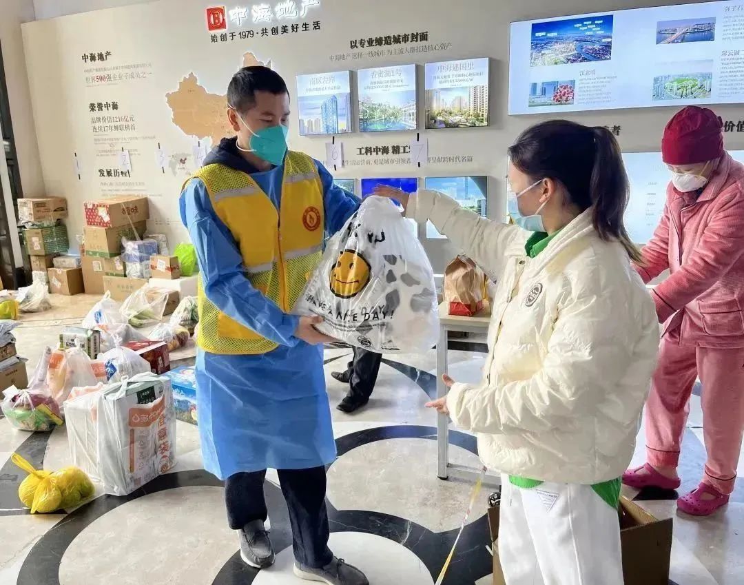 为社区居民分发生活物资。