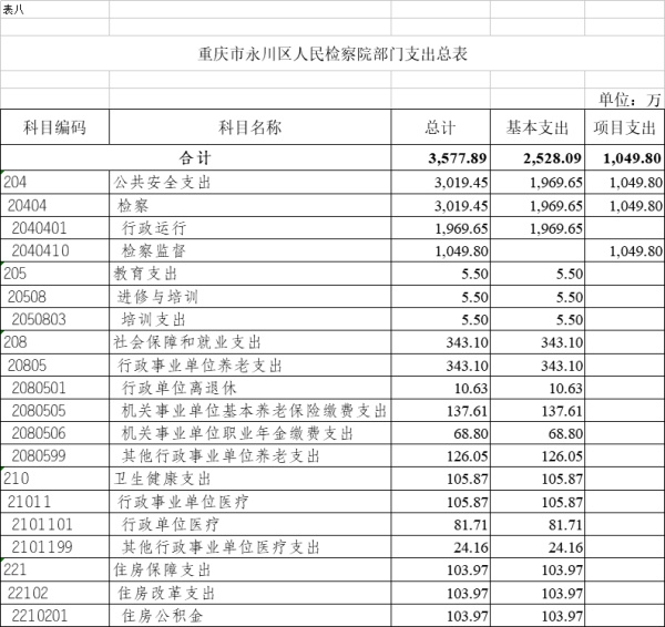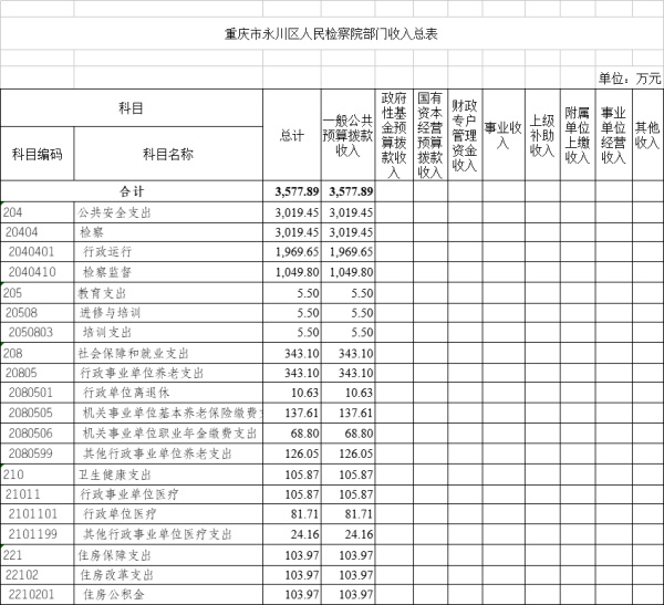 2022年一般公共预算财政拨款收入3577.89万元,一般公共预算财政拨款支出3577.89万元,比2021年增加500.32万元。其中:基本支出2528.09万元,比2021年增加57.52万元,主要原因是人员增加,主要用于保障在职人员工资福利及社会保险缴费、离休人员离休费、退休人员补助等,保障部门正常运转的各项商品服务支出;项目支出1049.80万元,比2021年增加442.80万元,主要原因是项目一次性经费拨款增加426.19万元,主要用于公诉和审判监督、公益诉讼、执行监督、控告申诉等重点工作。