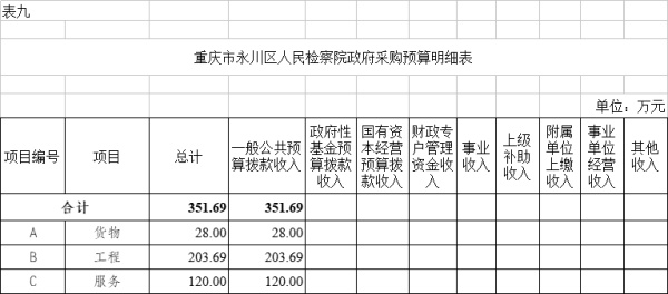 (二)政府采购情况。所属各预算单位政府采购预算总额351.69万元:政府采购货物预算28万元、政府采购工程预算203.69万元、政府采购服务预算120万元;其中一般公共预算拨款政府采购351.69万元:政府采购货物预算28万元、政府采购工程预算203.69万元、政府采购服务预算120万元。