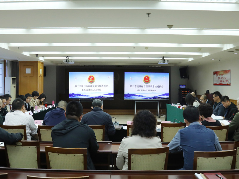 为进一步推动检察工作创新发展,促进各项工作取得新成效,近期,渝中区检察院召开第三季度目标管理绩效考核通报会。会议由党组书记、检察长陈宏主持,院党组成员、检委会专职委员、各业务部门负责人以及其他考评相关人员参会。