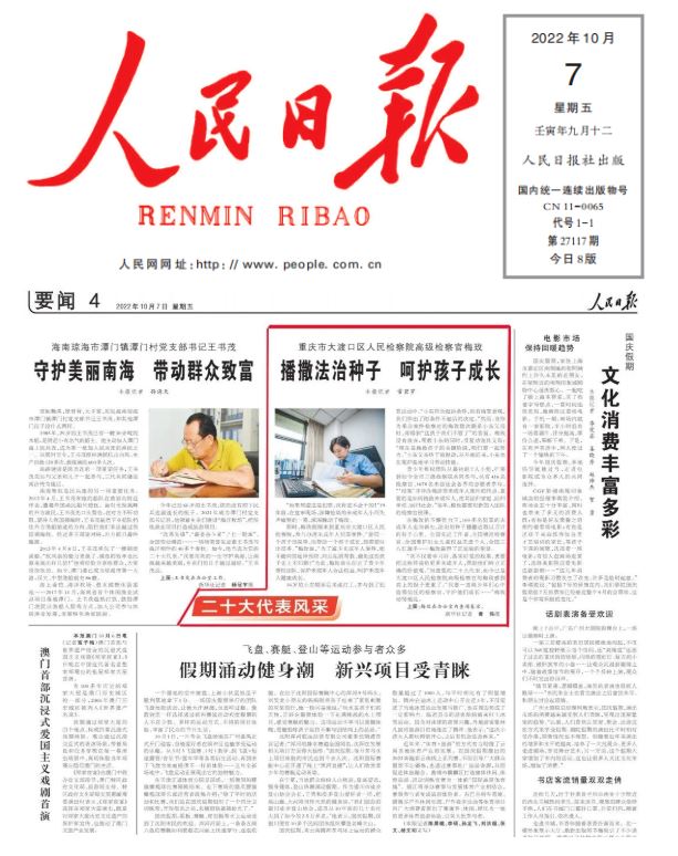 “我不仅要学习好、落实好党的政策,更要把这些传递给更多未成年人,帮助他们树立正确的价值观。”当选党的二十大代表,如今已是大渡口区中信精彩365_365彩票app下载苹果版_英国beat365官方登录高级检察官的梅玫感到肩上的担子更重了。“我愿一直做少年们心中值得信任的检察官,守护他们成长……”梅玫动情地说。
