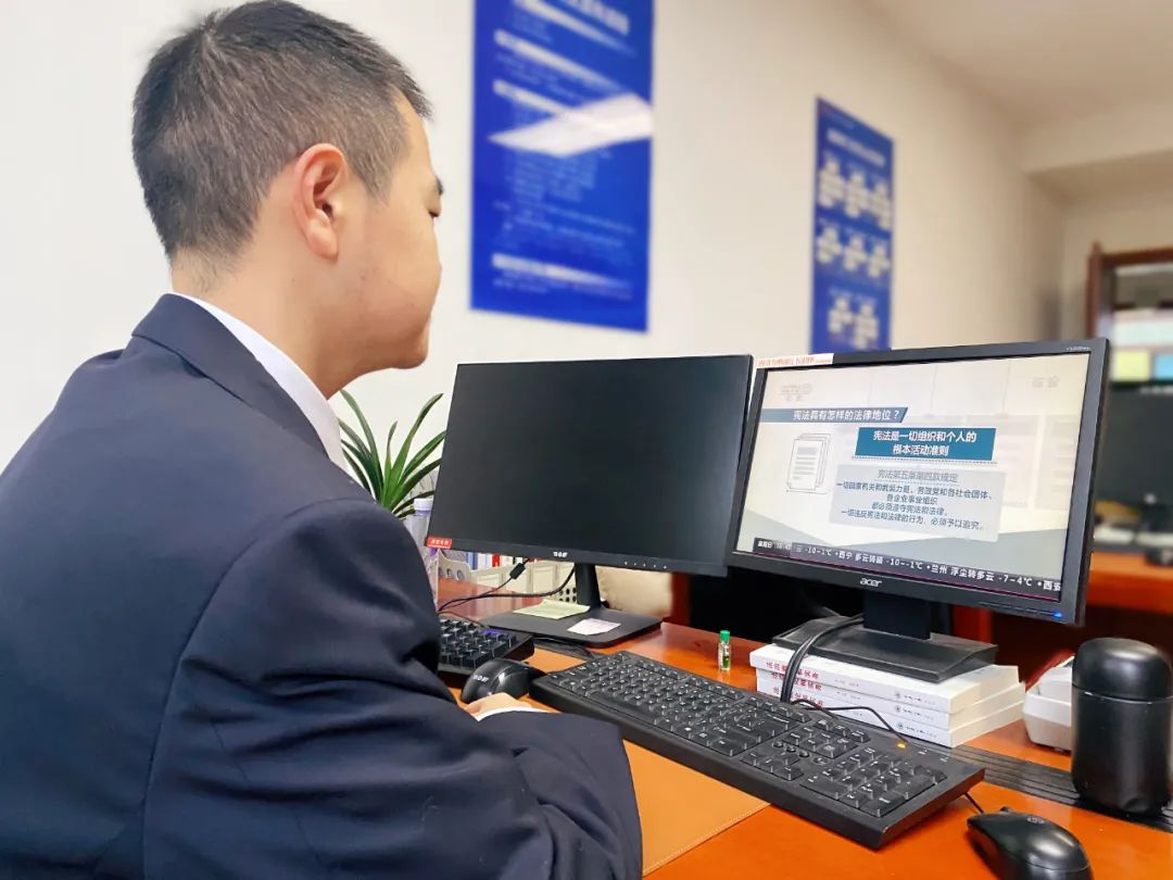 知法才能守法,懂法才能用法。为进一步增进干警职工对宪法知识的理解,长寿区检察院组织干警职工开展宪法学习活动。全院干警职工充分利用重庆“红岩魂”智慧党建平台和“学习强国”平台,通过“支部集中学+自学”相结合的模式,深入学习党的二十大精神、习近平法治思想及宪法知识。