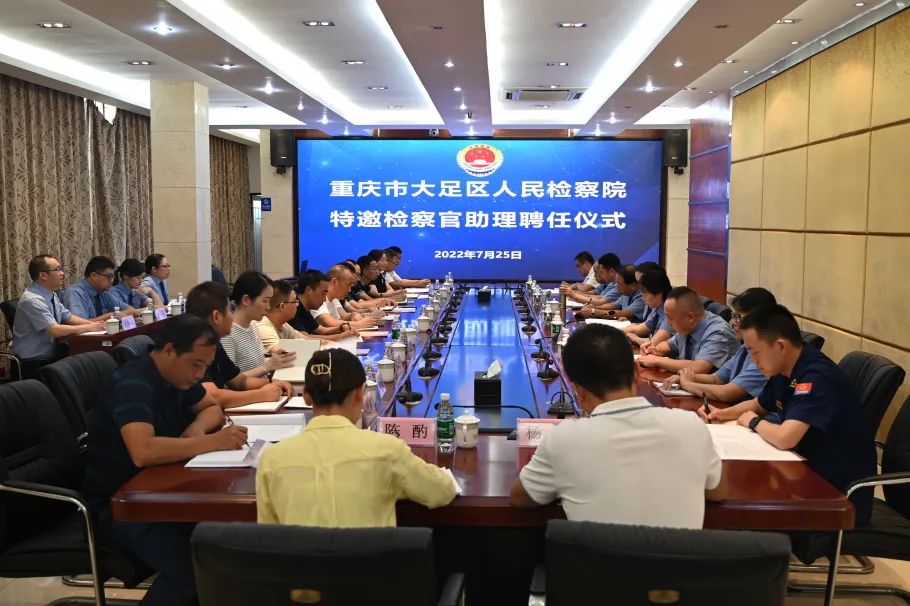 为深入贯彻《中共中央关于加强新时代检察机关法律监督工作的意见》,深化执法司法协作配合,7月26日,大足区检察院举行特邀检察官聘任仪式。在家班子成员、检委会专委、相关部室负责人,特邀检察官助理参加聘任仪式,院党组书记、检察长孙琳出席会议并讲话。