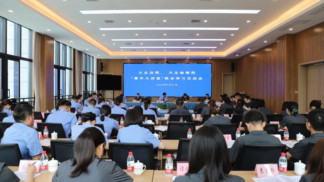 牢记殷殷嘱托、谱写发展新篇章。近日,大足区法院、区检察院联合举办“青年大讲堂”学习交流会。会议由区法院政治部副主任陈天主持,区法院党组成员、政治部主任杨卫东,审判委员会专职委员杨灿,以及青年理论学习研究会会员;区检察院党组成员、纪检组组长罗觉新,青年励新班全体学员共同参加交流会。