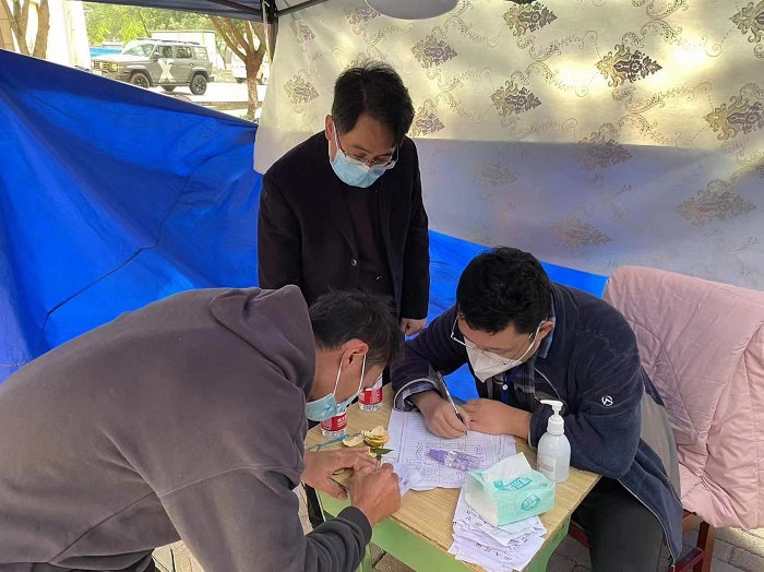 面对当前严峻的疫情防控态势,潼南区检察院按照区委组织部工作安排,积极响应号召,组织干警全力投入疫情防控工作。检察长宋川带头下沉小区,助力疫情防控。各干警在执勤点位卡口上做好宣传引导,协助强化社会面管控。为指导干警科学防疫,检察长宋川与政治部主任颜利华、纪检组长王飞走访干警执勤岗位,查看防疫力量配备、后勤保障等情况。
