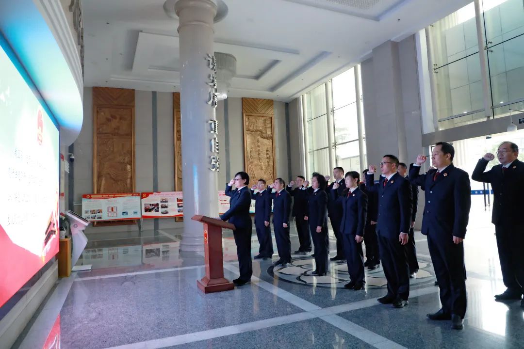 “我宣誓:忠于中华人民共和国宪法,维护宪法权威,履行法定职责......”为深入学习宣传贯彻党的二十大精神和习近平法治思想,大力弘扬宪法精神,维护宪法权威,推动全面贯彻实施宪法,12月5日上午,绵阳市检察院举行宪法宣誓仪式,全体班子成员、检委会专职委员、检委会委员参加仪式。 参加仪式人员一致表示,要以忠诚履职坚持和扞卫“两个确立”,以能动履职为大局服务、为人民司法,以自觉履职践行宪法法律赋权,以规范履职确保恪尽职守、廉洁奉公,融合推进党的二十大精神、省委十二届二次全会精神与做好当前各项工作,大力践行“一线工作法”、闭环工作法,踔厉奋发、勇毅前行,真抓实干、狠抓落实,以实际行动为全面建设社会主义现代化国家、全面推进中华民族伟大复兴贡献绵阳检察力量。