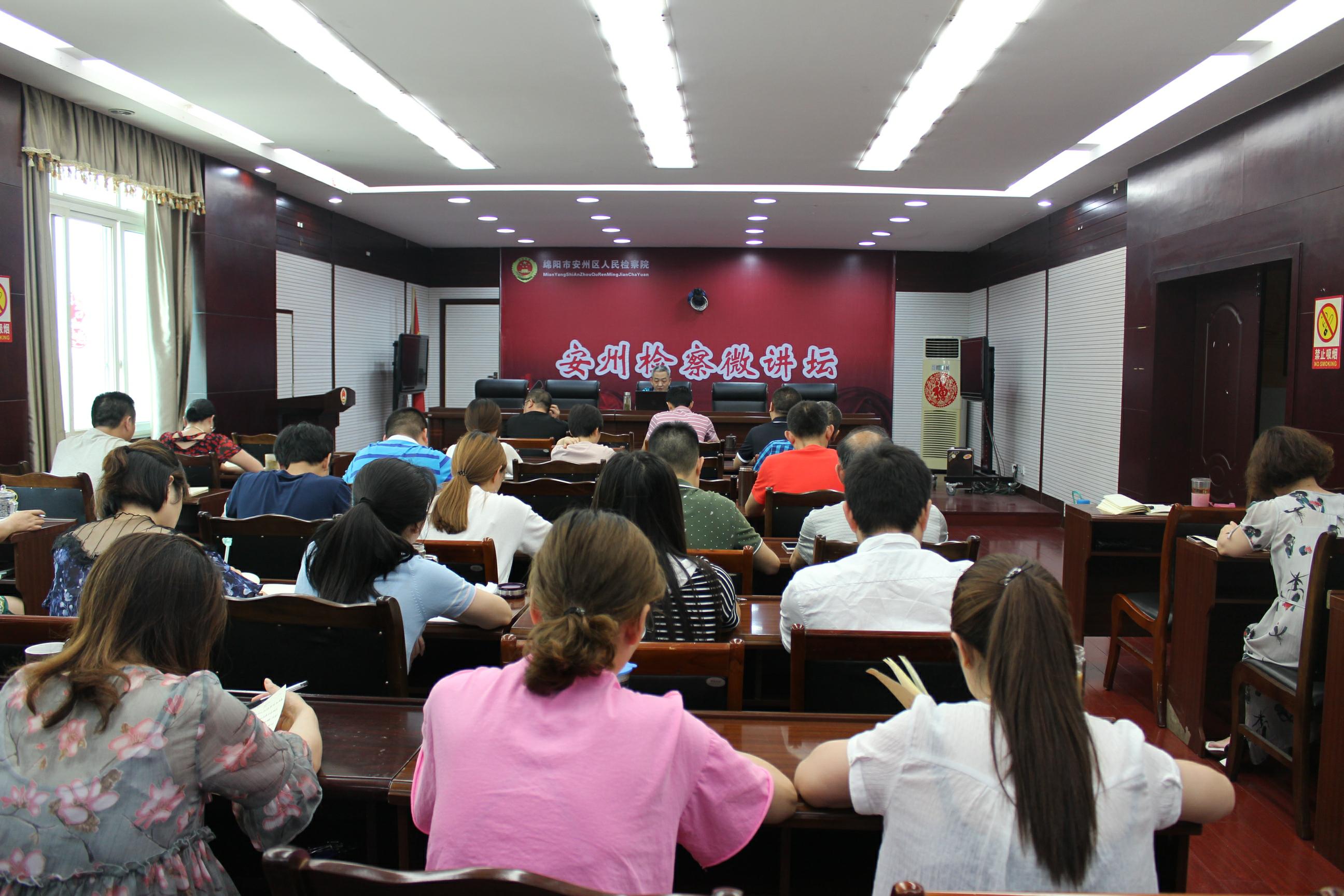 为深入贯彻落实“大学习、大讨论、大调研”活动的总体部署要求,扎实推进党风廉政建设教育,切实增强党员干部廉洁从政意识,5月31日,绵阳市安州区中信精彩365_365彩票app下载苹果版_英国beat365官方登录党组书记、检察长景中强围绕“常修为政之德,常怀律己之心——谈检察干警之修养”的主题,立足检察工作实际,为全院干警上了一堂丰富而精彩的微党课。