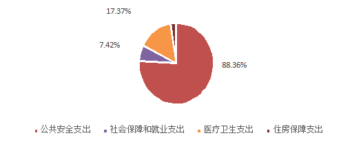 2017年一般公共预算财政拨款支出1381.41万元,主要用于以下几方面:一般公共服务支出0.09万元;公共安全支出1220.63万元,占88.36%;社会保障和就业支出102.49万元,占7.42%;医疗卫生支出17.37万元,占1.26%,住房保障支出40.83,占2.96%。