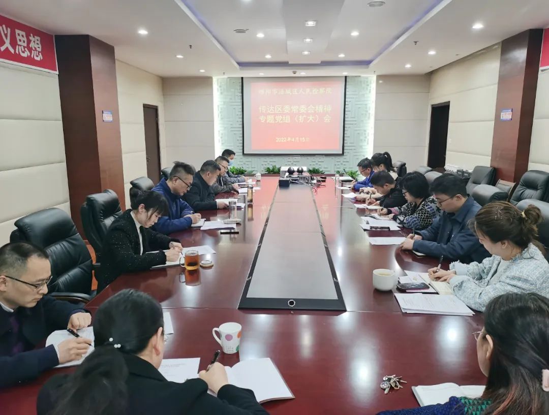 4月15日下午,涪城区检察院召开党组扩大会议,迅速传达贯彻七届区委第28次常委会(扩大)会议精神,研究部署下步工作。会议由党组书记、检察长肖伟主持,全院中层正职以上干部参加会议。