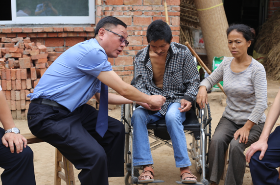 张涛检察长到贫困户家中,与他们促膝长谈,了解他们的身体情况和生活情况。用自己身边的真实病例,鼓励因脑溢血瘫痪的张勇,勇敢战胜病魔,振作起来,争取早日康复。临走时,张勇的妻子抹着泪对检察机关的关怀表示感谢。当张涛检察长一行来到73岁的李春洪老人家里时,老人拉着张涛检察长的手泪眼婆娑的不停道谢,感谢党感谢检察机关对她一直以来的关心和照顾。
