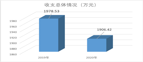 2020年度收、支总计1906.42万元。与2019年相比,收、支总计各减少72.11万元,下降4%。主要变动原因是人员变动及项目预算支出减少。