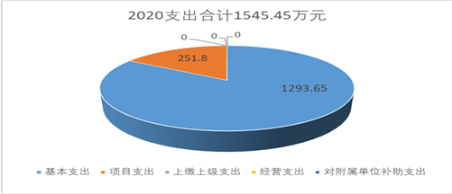 2020年本年支出合计1545.45万元,其中:基本支出1293.65万元,占83.7%;项目支出251.8万元,占16.3%;上缴上级支出0万元,占0%;经营支出0万元,占0%;对附属单位补助支出0万元,占0%。