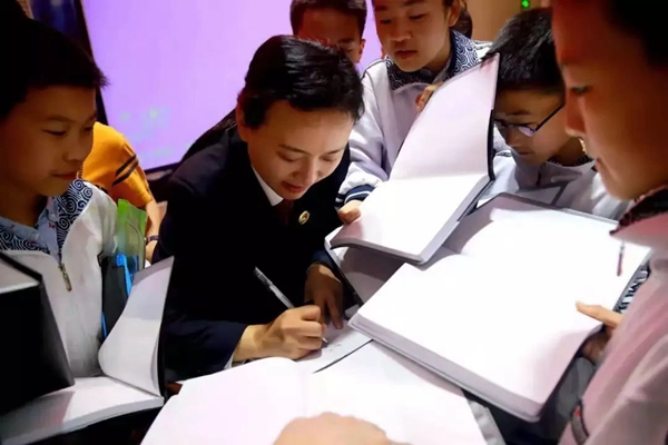 雍小凤参加法治进校园活动,被孩子们“追星”要签名。