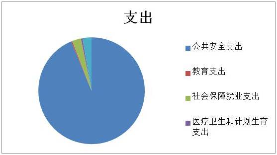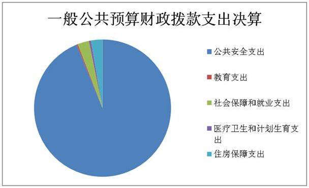 2016年支出决算总额为2493.64万元,其中:公共安全支出2336.68万元,占93.8%,教育支出8.34万元,占0.3%,社会保障和就业支出68.26万元,占2.7%,医疗卫生和计划生育支出13.68万元,占0.5%,住房保障支出66.68万元。占2.7%。