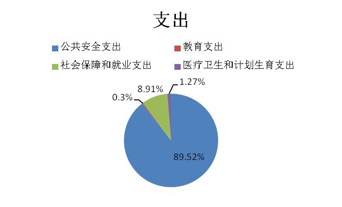 2017年支出合计为2709.1万元,其中:公共安全支出2425.1万元,占89.52%,教育支出8.26万元,占0.3%,社会保障和就业支出241.42万元,占8.91%,医疗卫生和计划生育支出34.32万元,占1.27%。