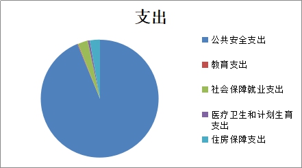 2016年支出决算总额为2493.64万元,其中:公共安全支出2336.68万元,占93.8%,教育支出8.34万元,占0.3%,社会保障和就业支出68.26万元,占2.7%,医疗卫生和计划生育支出13.68万元,占0.5%,住房保障支出66.68万元。占2.7%。