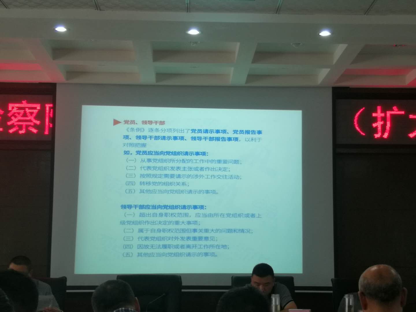 党组成员、副检察长胡云同志宣讲了习近平在中央政法委工作会议上的重要讲话和《中国共产党重大事项请示报告条例》。胡检强调,要深刻领会习近平总书记重要讲话的基本内涵,切实把思想认识统一到讲话精神上来,要全面、准确把握基本内涵,切实用讲话精神武装头脑、指导实践、推动检察工作。