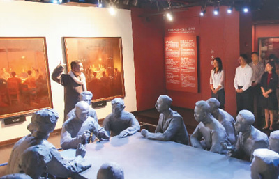 7月1日,“七一”主题活动在中共一大会址举行。图为党员在聆听“初心与使命”情景党课并参观陈列展。