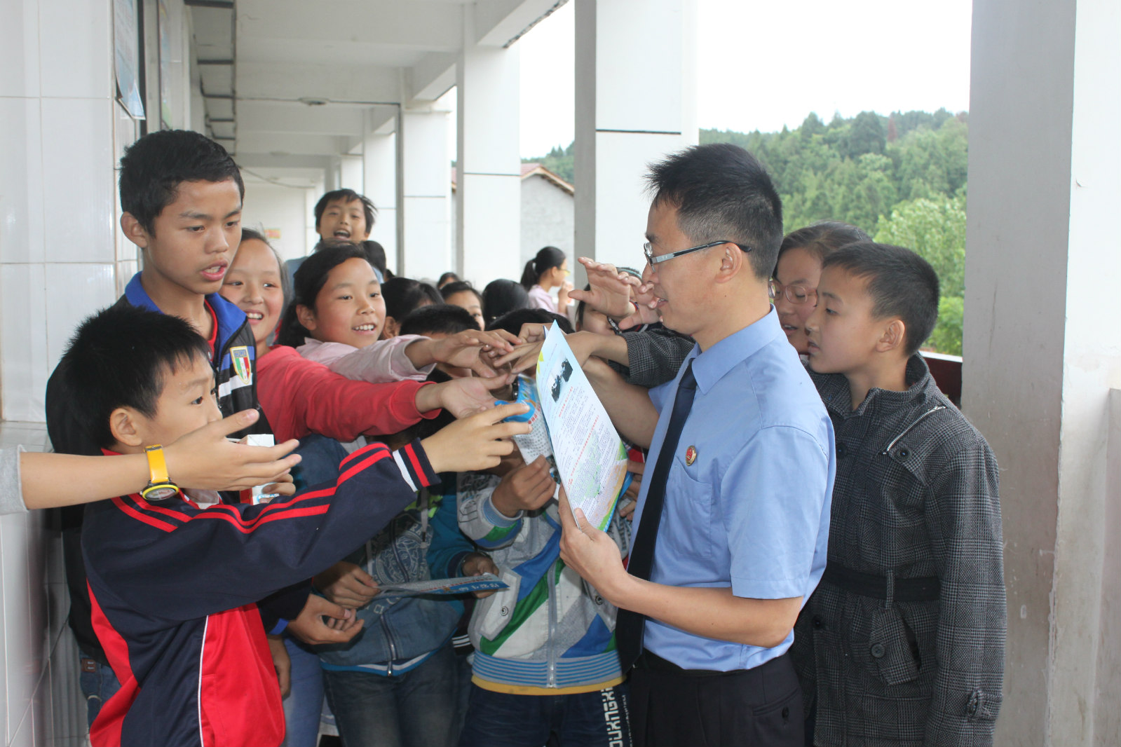 法制进校园,未检干警为同学们发放宣传单