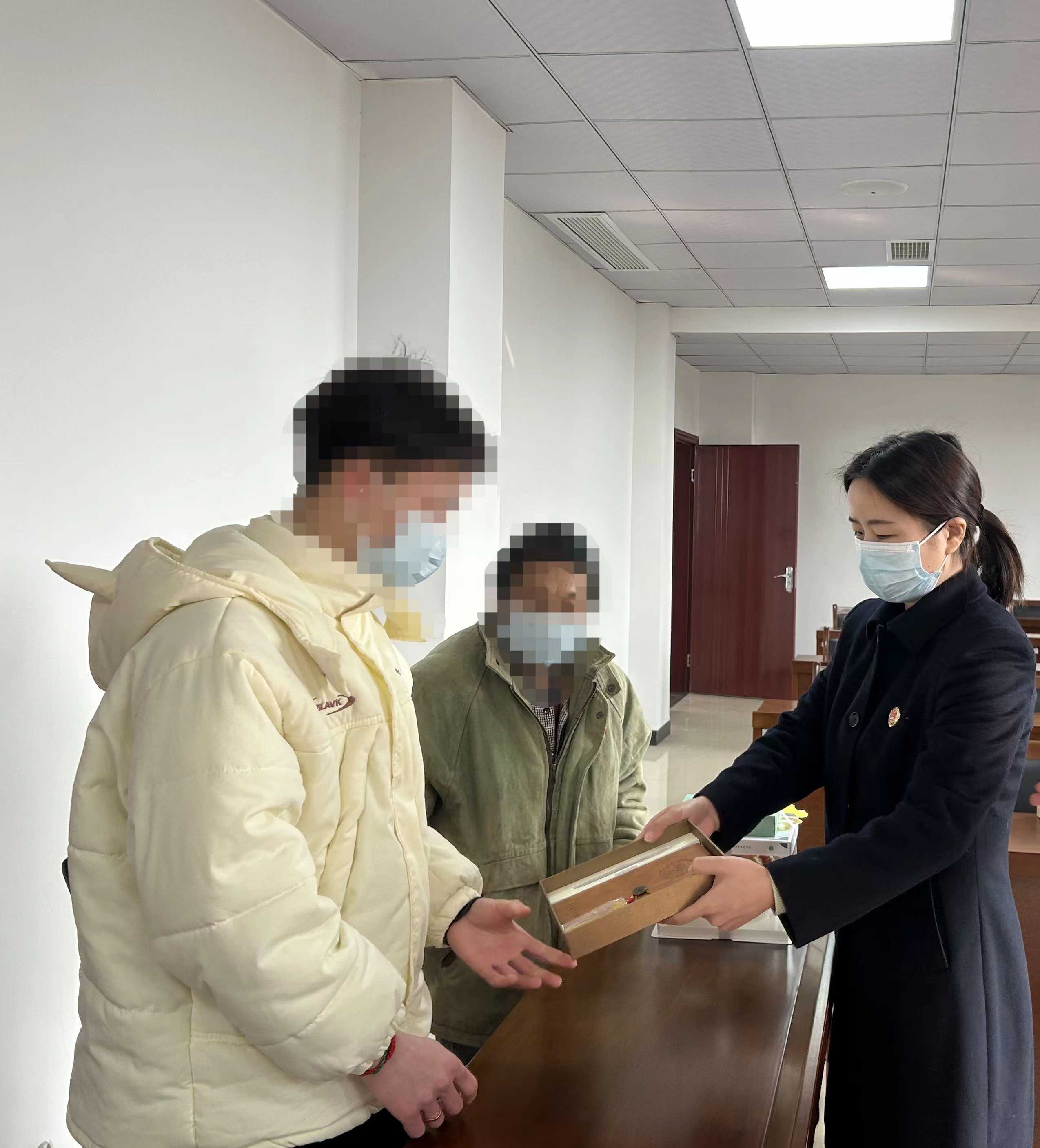 在不起诉宣告的同时,为王某某举行了一场特殊的成年礼仪式,检察官送上印有未检团队logo的笔记本、笔和法律宣传手册,让这些具有警示教育意义的物品伴随他,时刻提醒他不要再误入歧途,重蹈覆辙,希望其带着检察温暖继续前行,走向“新生”,并再次对其监护人进行家庭教育指导。