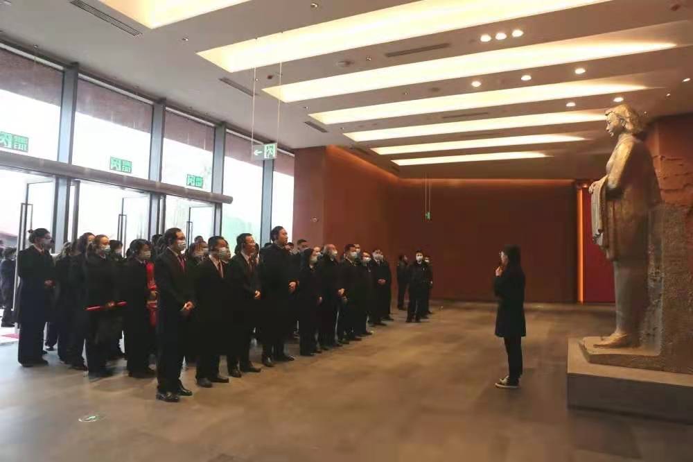 在江姐故居,全体干警循着红色故乡、江竹筠的童年时代、青少年时代、革命烙印、在烈火中永生和永远的丰碑等六大篇章,认真学习了解江姐的生平事迹,深切感受革命前辈艰苦环境下"坚定信念、浴血奋战”的革命精神,深刻体会革命先烈”对党忠诚、不怕牺牲”的奉献精神。通过学习大家深受触动,对江姐坚如钢铁的意志、宁死不屈的精神、对党忠贞不渝的品质,炽热深沉的家国情怀,油然而生崇敬之情。在江姐雕像前,干警们庄严宣誓,抚今追昔,满怀敬仰地深情缅怀江姐,对她深陷"渣滓洞”,毅然保持坚忍不拔的革命精神、用生命诠释共产党人信仰的行为,表示深深的震撼和无限敬仰。
